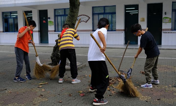 随着评委老师一声令下,选手们立即投入到紧张的比赛中。各组在组长的组织下明确了各自的分工,捡拾、扫地、垃圾入桶、清洁工具归位……大家各行其是,有条不紊,转眼间就把清洁区打扫得干干净净,一尘不染。各位评委对各班表现也进行了点评,对各班认真积极的态度提出表扬,也指出了打扫中存在的问题,强调了团结合作的重要性。评委老师们对各班的表现进行了公正评价,评出了班级一、二等奖。 现在的学生在家很少承担家务劳动,打扫卫生时候总是不得要领,既浪费时间又打扫不彻底。为了培养学生良好的打扫卫生习惯,学校以竞赛的形式进行引导和教育,让他们体验到劳动的快乐,在生活技能方面得到和谐发展,让孩子们健康快乐成长。