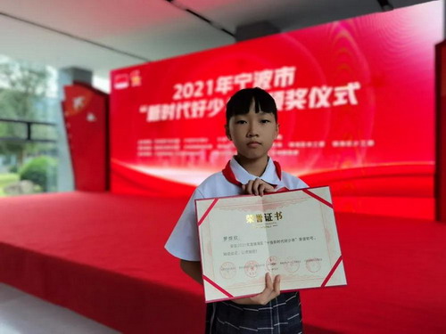 早在2021年5月,罗烨欣同学就被评为“镇海区十佳新时代好少年”。同时,她参加了“浙江省青年志愿服务大赛”,并获得了金奖。