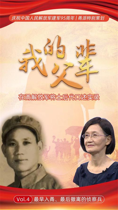今年是中国人民解放军建军95周年。为迎接这个特殊的“八一”建军节,甬派客户端特别策划推出《我的父辈——在甬解放军将士后代口述实录》,邀请参加过解放宁波战斗的将士后代,讲述父辈们在峥嵘岁月的革命故事,重温那些让革命之火生生不息的理想信念,感悟革命先辈以身许国的壮志豪情。