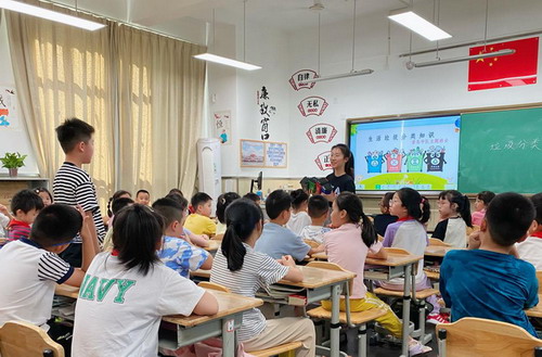 “垃圾分类到位,变废为宝成真!”“垃圾分类是时尚,争做分类小达人!”一阵阵口号从教室里传来,原来二、三年级的同学们正争做垃圾分类小达人呢!“我们特意把‘垃圾分类’作为‘开学第一课’,学习就是生活,生活就是学习,只有把垃圾分类作为‘新时尚’,我们的生活才会更加美好!”首导们坚定地说道。谈及收获,同学们兴高采烈地分享着,更有一位同学站起来大声说:“垃圾分类人人有责,今天回家后我可要当‘小老师’,教我的爷爷奶奶垃圾分类!”