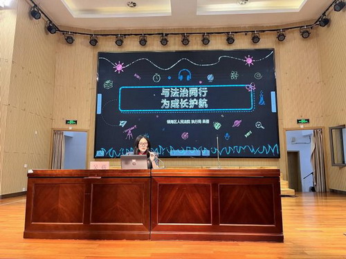 “你当温柔,却也得有力量,面对欺凌时就得勇敢说‘不’!”“法治意识不可少,避免冲动多思考。不良信息要警惕,暴力镜头勿模仿。”来自镇海区人民法院的法治副校长吴蓓法官为六年级的同学带来了一堂生动的反欺凌与反暴力法治课堂。吴法官的课堂语言幽默风趣,化法治理论知识为生动具体的实例,在同学们心中厚植法治意识,赢得了在场同学们的阵阵掌声。