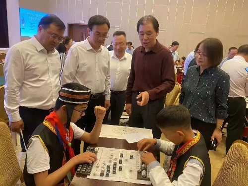 活动现场,除了四地百余名少儿同场竞技展示“汉字棋”文化魅力外,鄞州当地企业还向凉山州“汉字棋”推广项目援助20万元,以支持凉山州近200所中小学的“汉字棋”活动。 鄞州区委常委、副区长张立伟介绍说,自2021年以来,在木里、盐源两地党委政府的共同努力下,“汉字棋”活动试点工作已取得显著的阶段性成果,至2023年初,两县已有近80所中小学开展“汉字棋”活动,参加活动的学生累计达到12000余名,举办县级、校级“汉字棋”赛事150余场次,在两县展现了一道“汉字棋”推普助学的亮丽风景线。