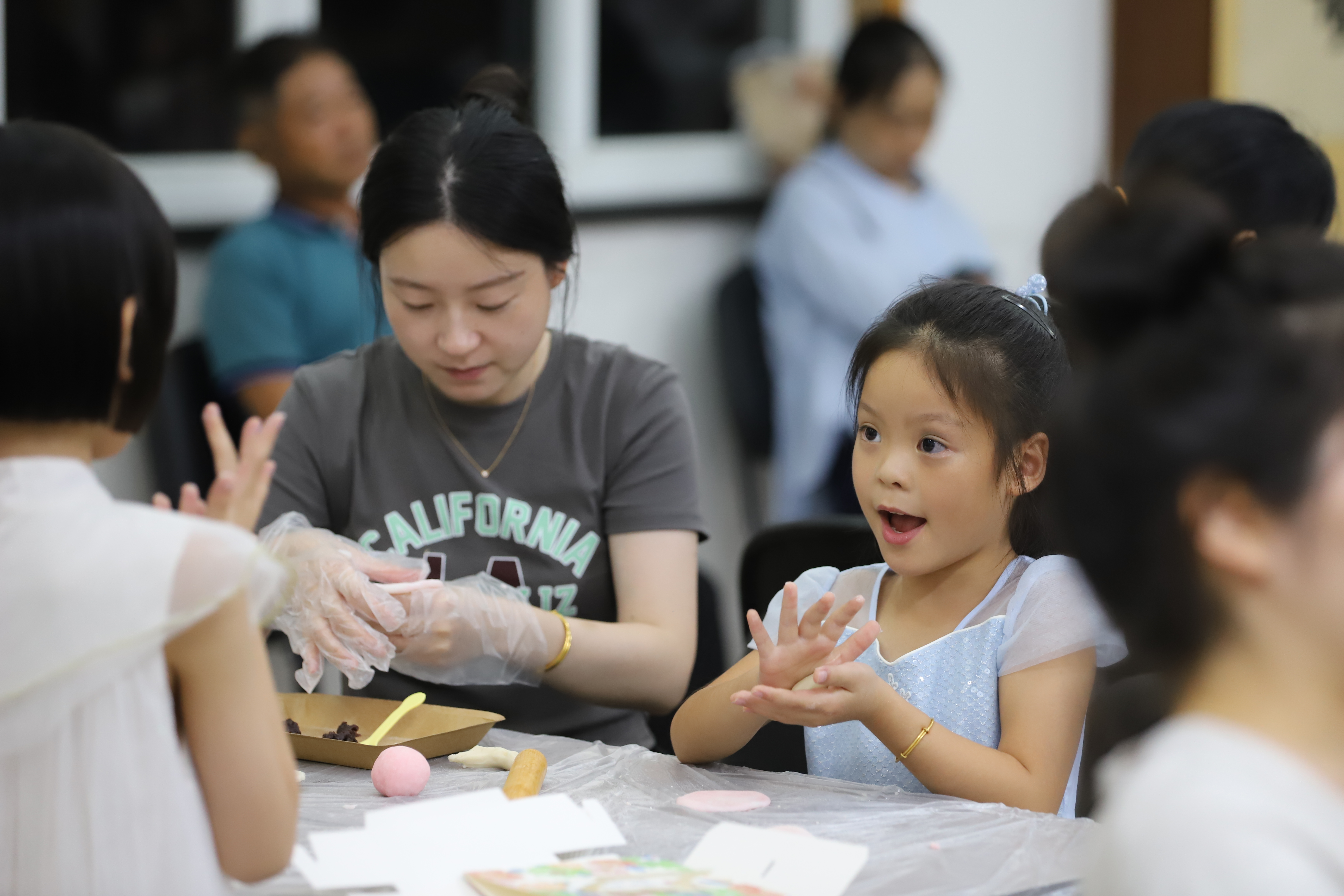 活动中,面点师带领大家亲手制作冰皮月饼,为即将到来的中秋佳节和亚运盛会,增添喜庆样和的节日气氛。