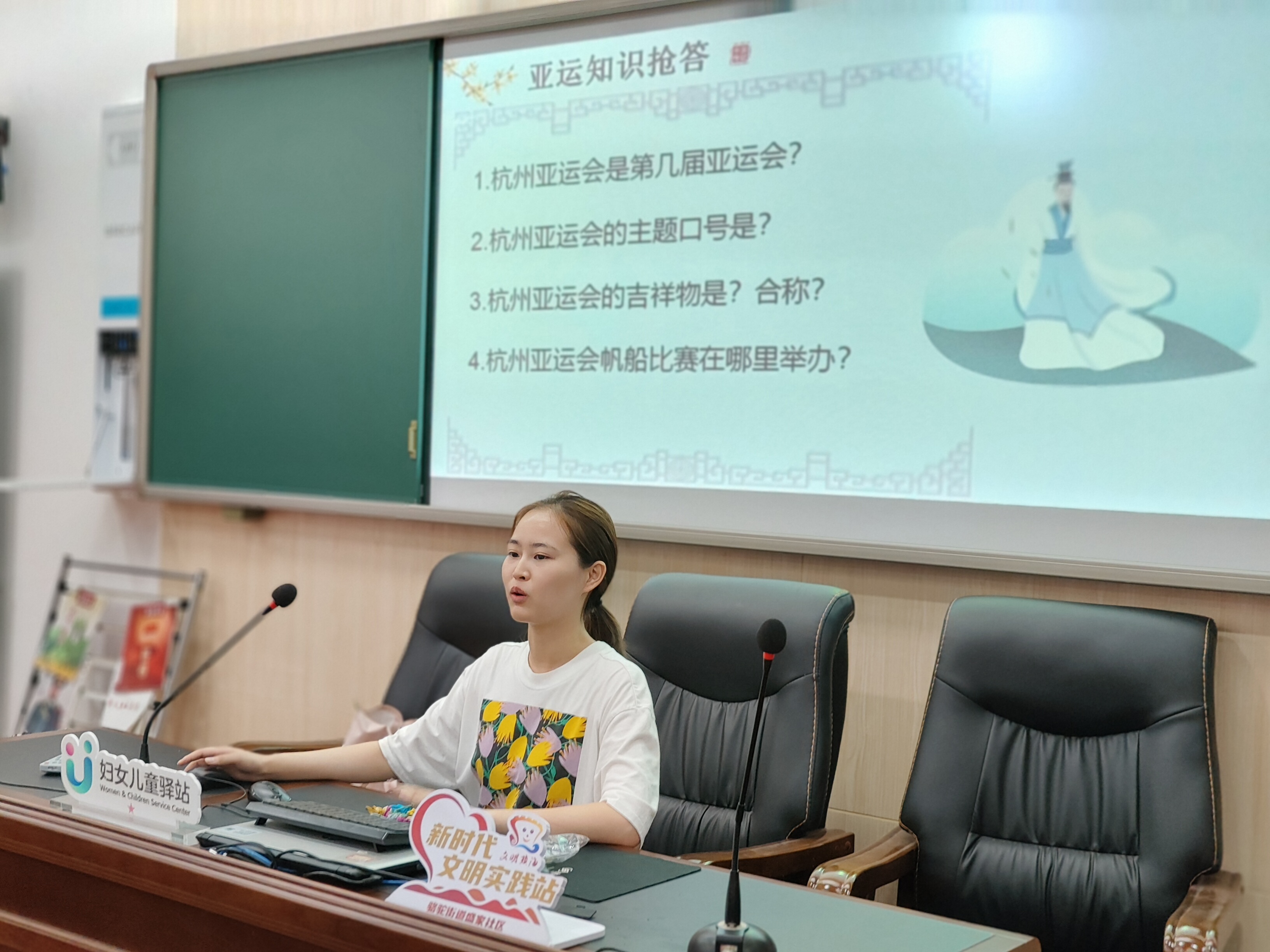 活动现场,盛家社区关工委的老师们为同学们准备了精美奖品,用亚运小知识、中秋赏月古诗的方式进行抢答竞赛。同学们开动脑筋,踊跃举手参与。在欢声笑语中让亚运精神、传统文化注入到学生心中。