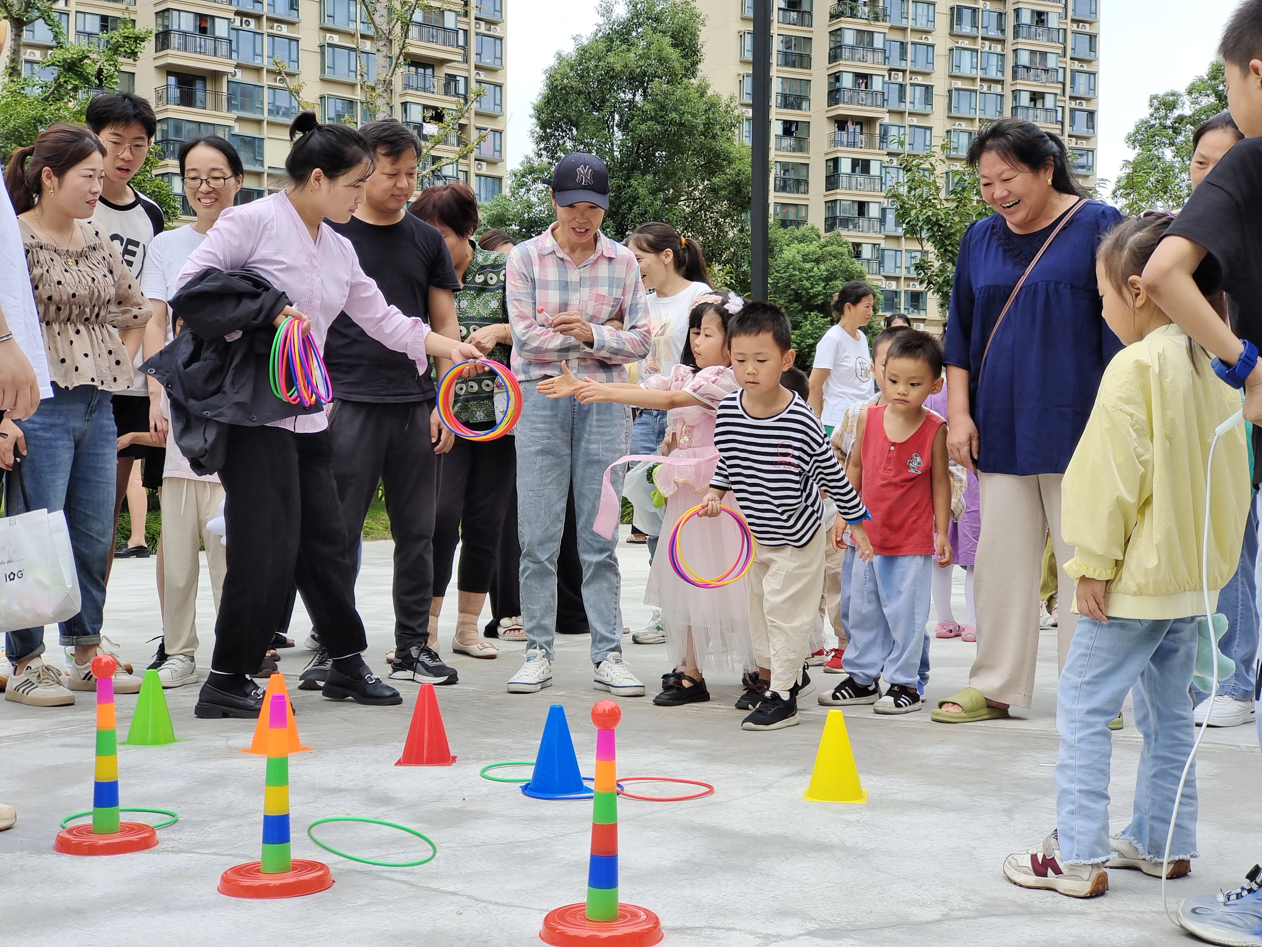 本次游园会在恒大山水城明苑小区中央公园举行。现场有志愿者们精心策划的“毛毛虫竞速”“套个圈圈”“沙包投掷”“跳绳接力”“宝藏猎人”“灯谜状元”等游戏,吸引青少年们自由结伴、组队打卡,以融融的节庆氛围开启大家的悠闲假期时光。