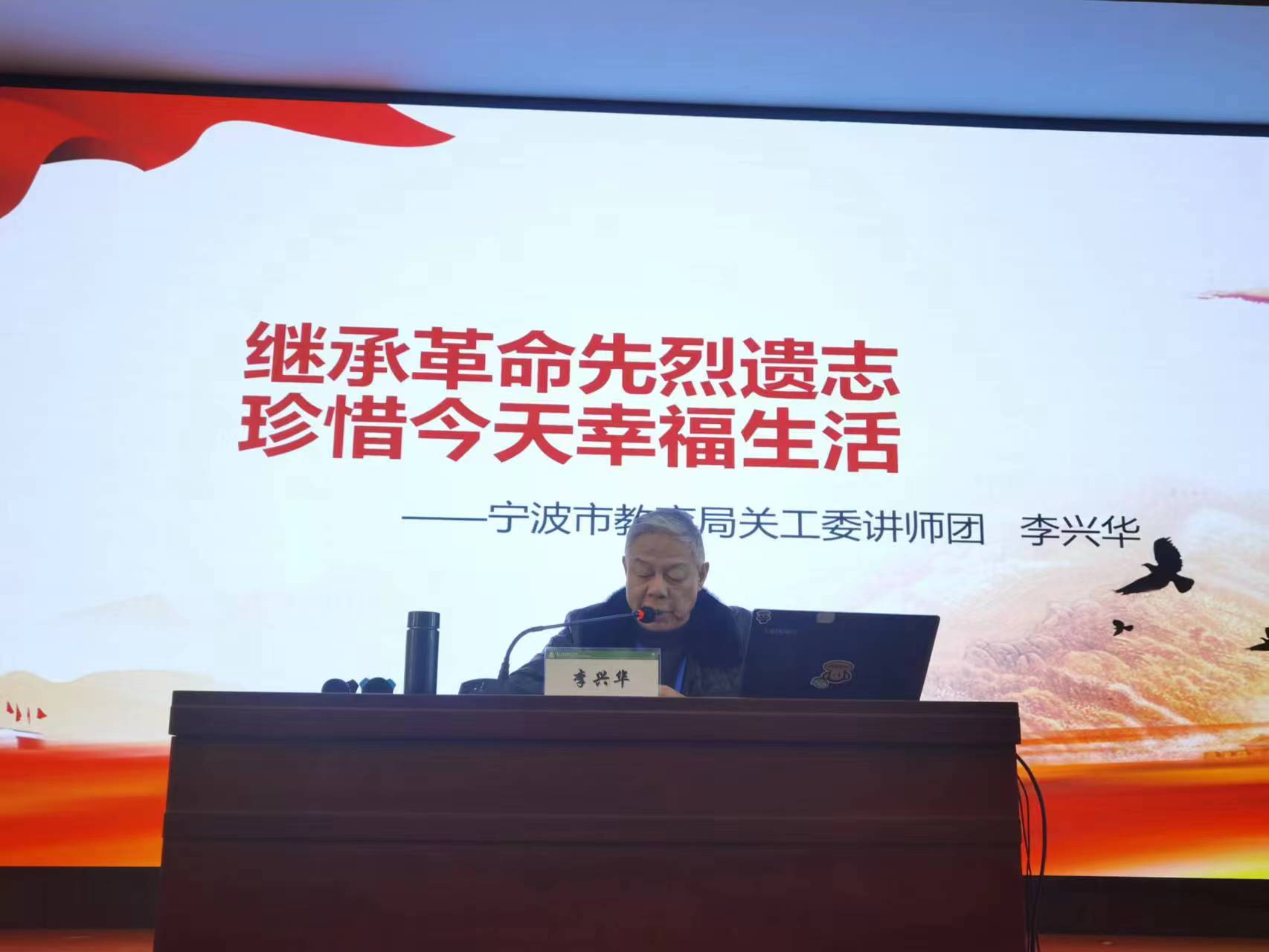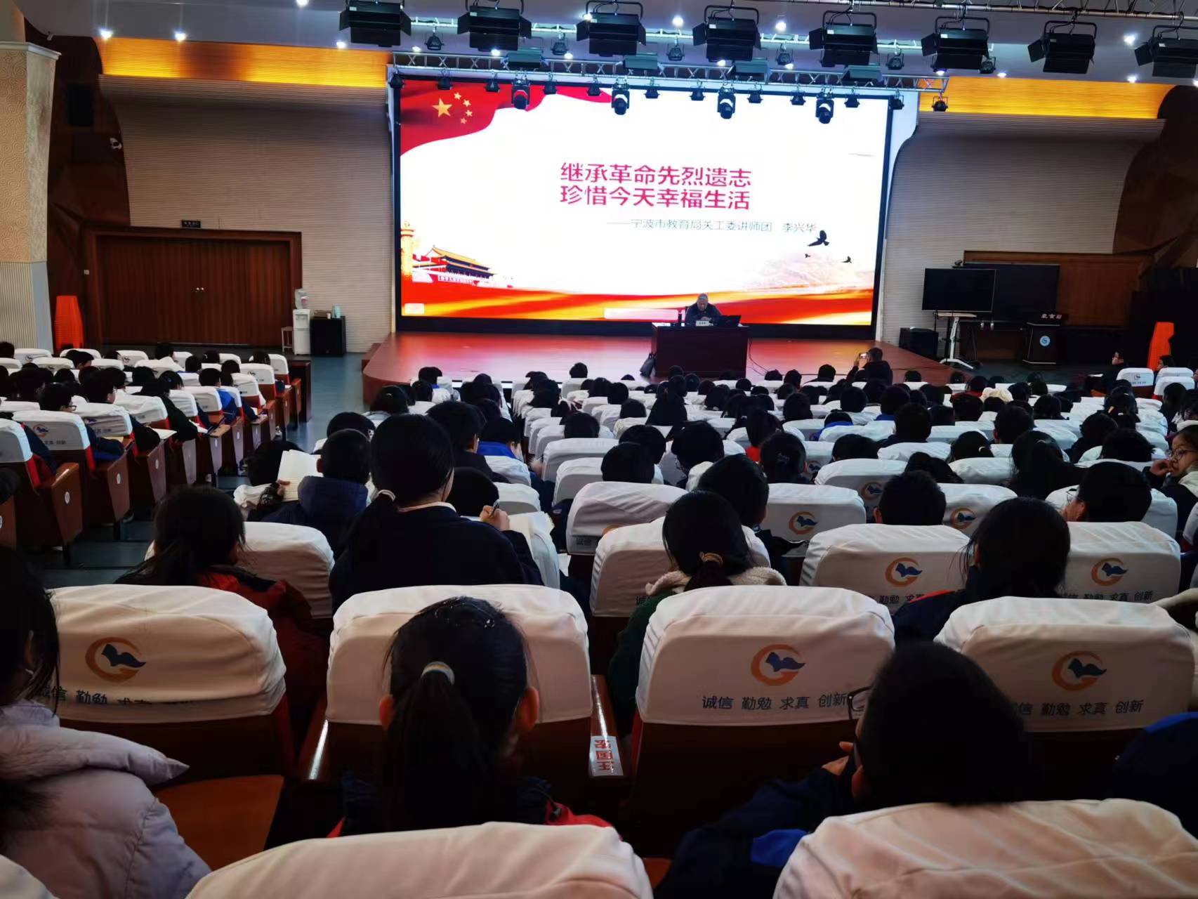 在2024年的新年即将到来之际,古林镇中学在学校大报告厅举办了一场“红色主题教育”专题活动。 古林镇中学学校关工委邀请宁波市教育局关工委“四明薪火讲师团”成员李兴华老师作了《继承革命先烈遗志,珍惜今天幸福生活》的专题讲座。讲座内容从“人民英雄纪念碑”和“李大钊同志的事迹”这两个方面入手,以崇敬的心情,用抑扬顿挫的语调,深切怀念先烈们的丰功伟绩。李老师鼓励同学们:我们一定要珍惜今天的幸福生活,用我们的青春,用我们的激情,为我们中华民族伟大复兴贡献我们的力量。 近400位初一学生,参加了听课活动。李老师的讲课,赢得了听课师生的热烈掌声,受到了大家的一致好评。