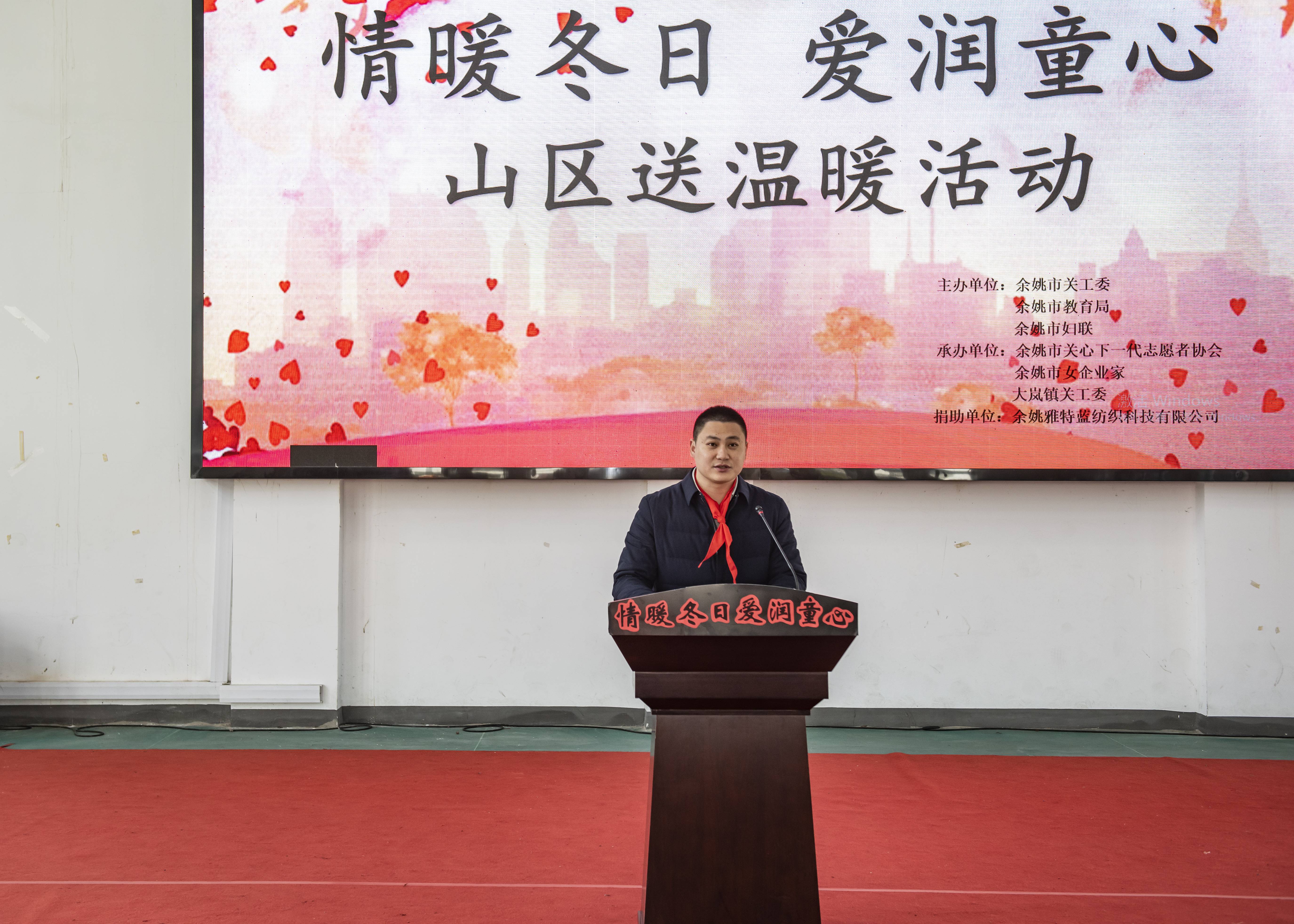 2023年12月29日上午,余姚市“情暖冬日 爱润童心”山区送温暖活动在大岚镇中心小学举行。活动由余姚9759彩票集团、市教育局、市妇联联合主办,市关心下一代志愿者协会、市女企业家协会和大岚镇关工委承办。余姚9759彩票集团、市教育局、大岚镇相关领导和负责同志,捐赠单位余姚雅特蓝纺织科技有限公司总经理和相关人员等参加活动。