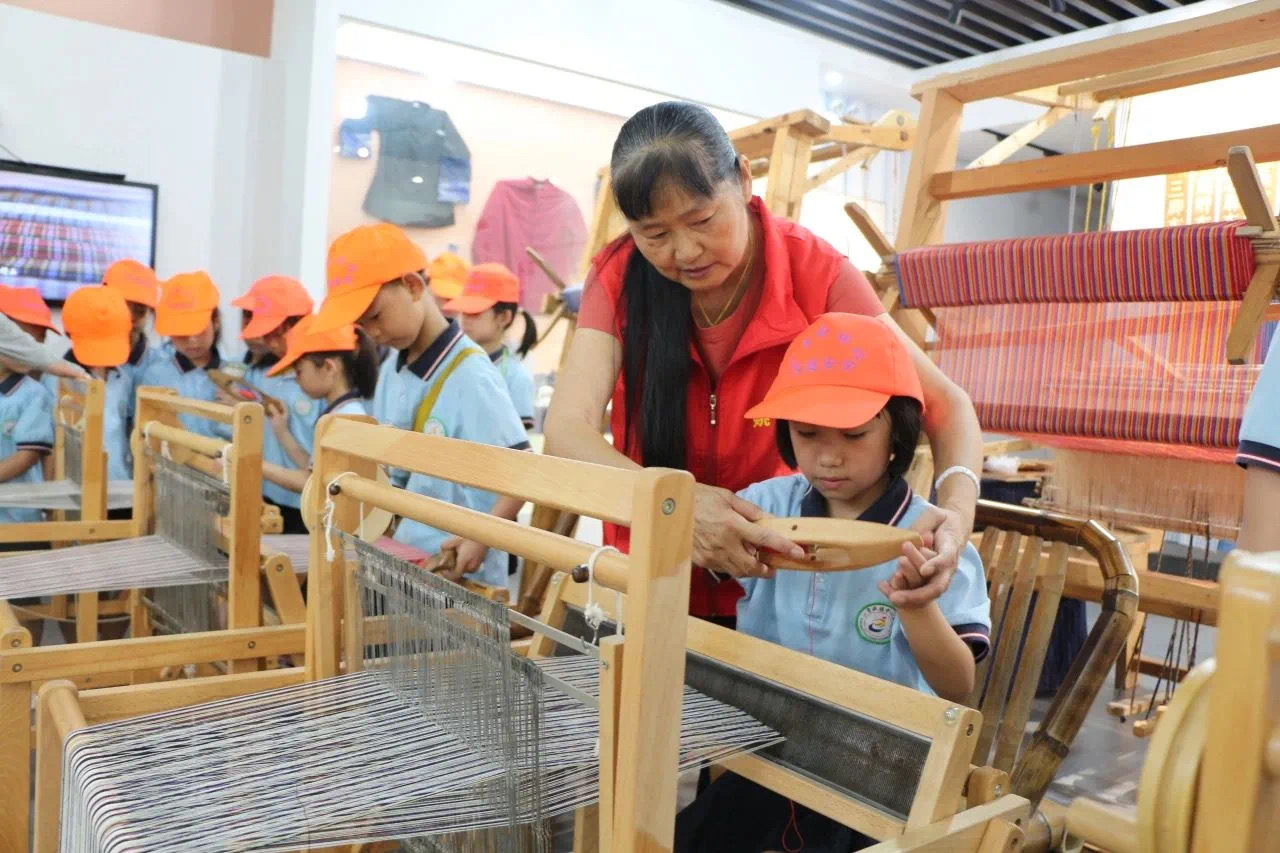 培养一批技艺传承人。除土布传承人王桂凤外,基地积极寻找其他土布制作手艺人,完善土布技艺,充实传承人队伍。每年暑假期间,阵地面向青少年举办“余姚土布制作技艺‘小小传承人’”培训班,目前已开班八期。近年来,阵地在节假日和双休日共接待余姚市内及周边学生近5000人次,组织研学活动100余次。青少年通过参观展示馆、了解非遗知识、学习制作工艺、体验织布过程,对余姚土布产生了浓厚的兴趣,进一步提升了青少年的非遗文化、劳动素养、创新能力和爱乡情怀,为余姚土布技艺和土布文化的传承储备人才。