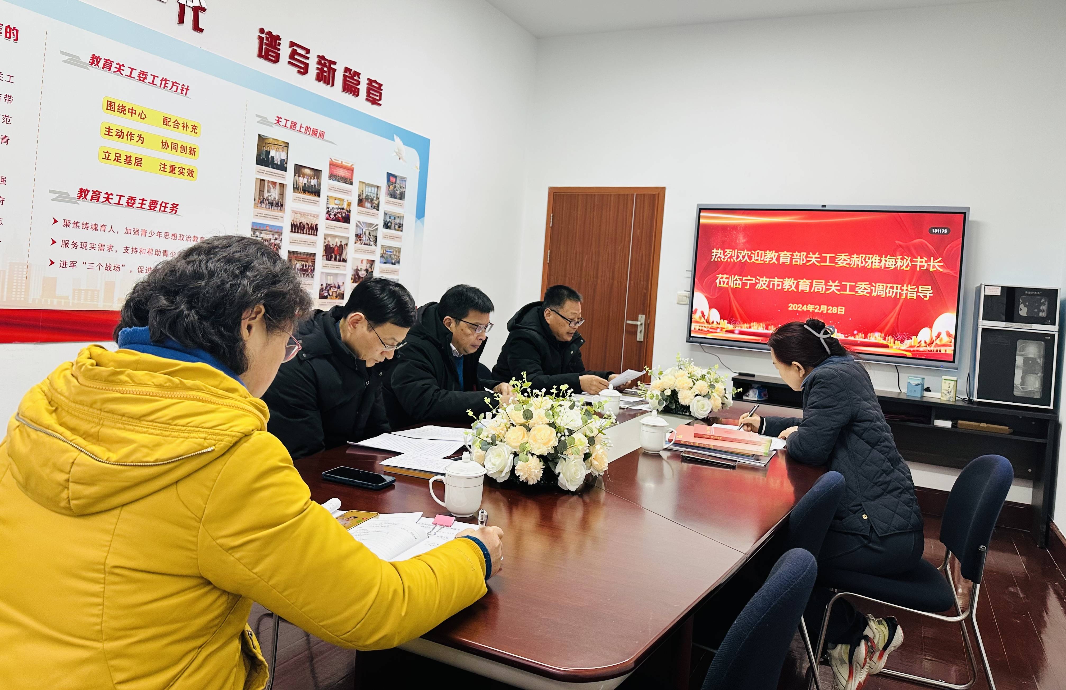 2月28日下午,教育部关工委郝雅梅秘书长到宁波市教育局关工委调研指导关心下一代工作。宁波市教育局关工委主任周波、宁波市教育局关工委原主任张力鸣、常务副主任兼秘书长孙钢、副秘书长王亦敏等陪同调研。