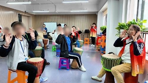 “小潘跟着朱老师学葫芦丝整整6年了。从前他连乐器都拿不住,现在能完整完成一场演出。”提起孩子的变化,“星宝”小潘的奶奶难掩感激,“朱老师的耐心没话说,是他让我们全家重新看到了希望。” “很多老师教着教着就爱上了这些孩子,舍不得放弃。”朱中人介绍,团队目前有60余名银发志愿者,从周二到周日每天都会开设课程。这些课程专为孤独症孩子的养护需求设计,并主动配合家长的时间安排,为星宝家庭减轻日常照护的压力。 课程设置上,团队精心规划了三大类内容:艺术课涵盖葫芦丝、国画、非洲鼓等,在安抚“星宝”情绪的同时,发掘他们的天赋潜能;家政课包含礼仪、烹调、家务整理、应急处置等,有效提升他们的生活能力;体育课则有瑜伽、篮球、足球等,助力他们强健体魄。目前,已有120余名“星宝”在团队的陪伴下学习成长。 这份温暖的坚守,既源于朱中人的个人执着,也离不开团队成员的集体努力。退休前,朱中人曾担任宁波广播电视大学(现更名为宁波开放大学)党委书记、副教授,在教育领域积累了丰富的资源与经验。如今,身兼海曙区关工委名誉主任、海曙区关心下一代银发志愿者协会名誉会长的他,还承担着协会育苗工作室负责人的职责。工作中,他不止帮扶特殊儿童,更长期通过微课程、短视频、沙龙互动、现场教育、场景模拟等多种形式开展红色宣讲,助力青少年扣好人生 “第一粒扣子”。同时,他还带动大批 “五老” 志愿者投身关心下一代服务,其中不少志愿者是他曾经的同事与学生。