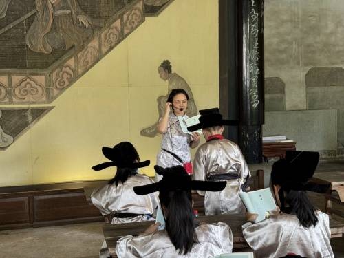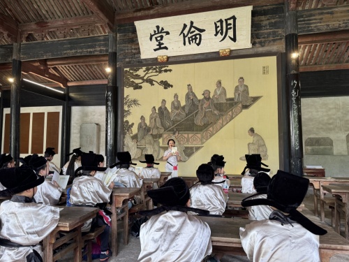 孩子们在明伦堂中读《弟子规》