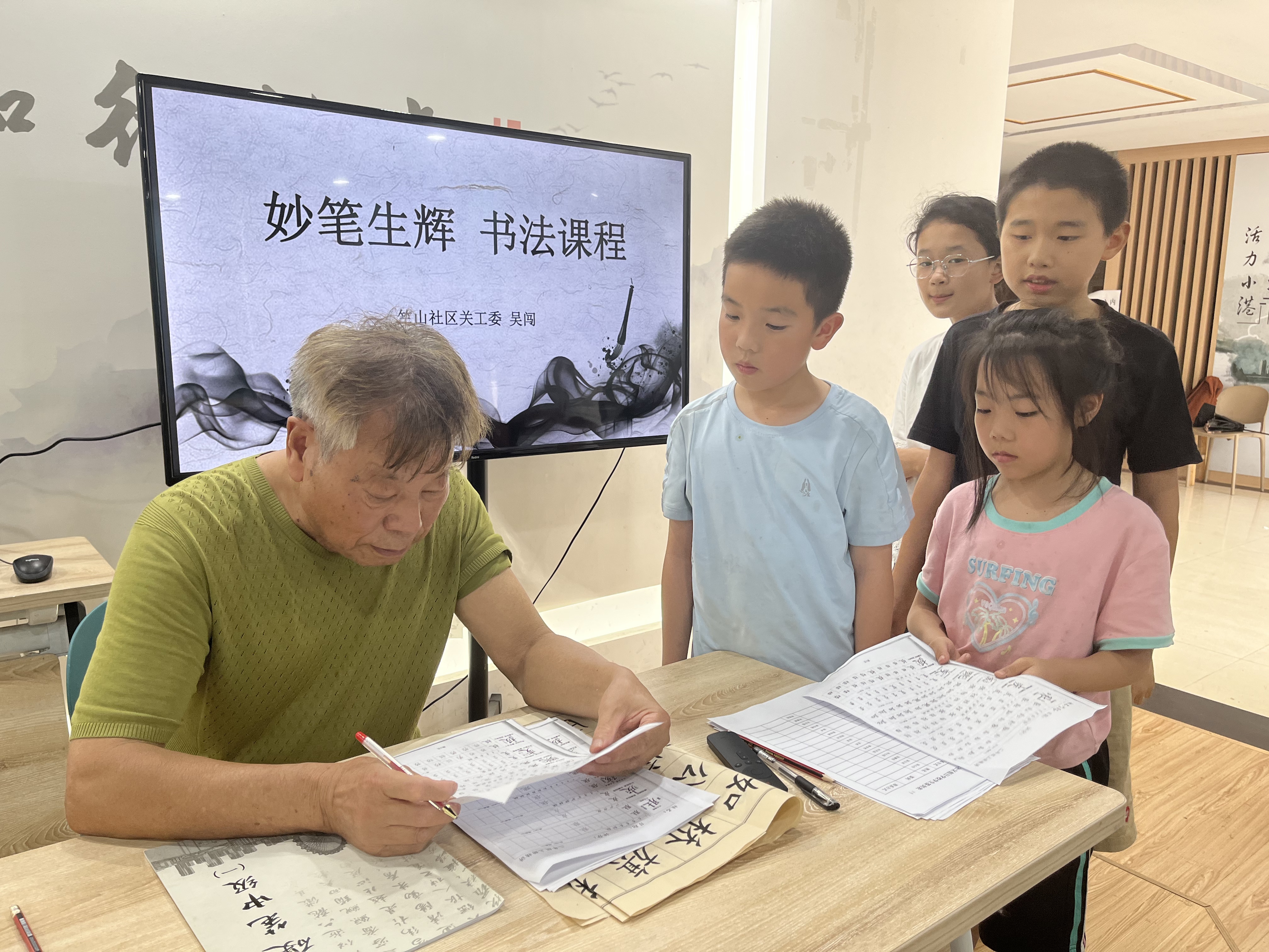 一堂课,银发泼墨暖青苗 笔尖刚一抬起,孩子们好奇的目光便聚焦在吴爷爷身上。“写好字,关键在结构。比如‘党’字的宝盖头,要撑得开阔,像顶保护伞……”吴闯开始耐心讲解,边说边将印着九宫格的练习纸分发下去。教室里很快响起笔尖摩擦纸张的“沙沙”声。 不一会儿,练习完成的孩子们纷纷拿着习作纸,在讲台前自觉排起小队。“都别急,一个个来。”吴闯戴上老花镜,拿起红笔仔细审视。“这一横写得稳,有力度!但这个捺收笔稍急,不够舒展,手腕再沉一点试试……”他几乎是伏在案头,逐字圈点批注,对结构和运笔给出具体修改建议,最后还不忘在作业上方工整地打上一个鼓励的分数。 “吴爷爷好!”一个稚嫩的声音响起。“哟!是你啊!”吴闯抬头,立刻认出眼前的男孩,“去年就来学过,我记得你写的‘福’字有进步!”被爷爷点名的孩子腼腆一笑,温馨互动引得课堂气氛轻松愉悦。 半世纪,党员初心耀“新岗” “社区就是我的新战场!”吴闯胸前,“光荣在党50年”纪念章闪耀着信仰的光芒。这位昔日的北仑港建设党员先锋,如今是社区文化志愿服务的“领头雁”。2013年,他和同是党员的妻子邹文利选择将党徽别在志愿马甲上,成为社区一道充满信念感的风景线。 自2014年牵头成立墨友书法协会,这支平均年龄76岁的“五老”团队便开启了新的征程。十年间,他们累计送出春联超2千副,开设公益书法课80余场。“字如其人,一撇一捺都要堂堂正正!”12岁的张雨欣清晰记得吴爷爷教她的第一个“人”字。2022年启动“老带新”机制后,像她这样在银龄导师指导下成长起来的青少年书法骨干已超10名,翰墨馨香正代代相传。 十年路,春联方寸映变迁 每逢岁末,竺山社区广场便化作火热的“露天书法博物馆”。十年匠心,“五老”团队推动社区春联华丽蝶变:从千篇一律的吉祥话,升级为蕴含家庭故事的定制楹联;从单一墨色,发展为融合剪纸、年画元素的艺术品。 老党员邹文利指着居民孙阿姨家定制的对联“地铁穿山家添喜,书香满巷户纳福”介绍:“上联讲地铁通到家门口的喜悦,下联赞社区书屋飘出的文化香。”小小春联,早已成为记录民生发展、传递邻里温情的新载体。 竺山社区关工委将这支宝贵力量纳入“银龄智库”,构建长效机制:周三固定“银龄导师日”切磋笔法,寒暑假开设“小小书法家”特训营,老少同堂,教学相长。“他们不仅是文化传播者,更是社区治理中的柔性力量。”社区假日学校校长沈红燕表示,未来计划打造更立体的“五老”工作矩阵,推动书法课堂与红色研学、非遗传承深度联动。从2014到2025年,这一副副浸透深情的春联,串联起的是一条承载着银发初心、见证社区发展、滋养少年心灵的文化长河。