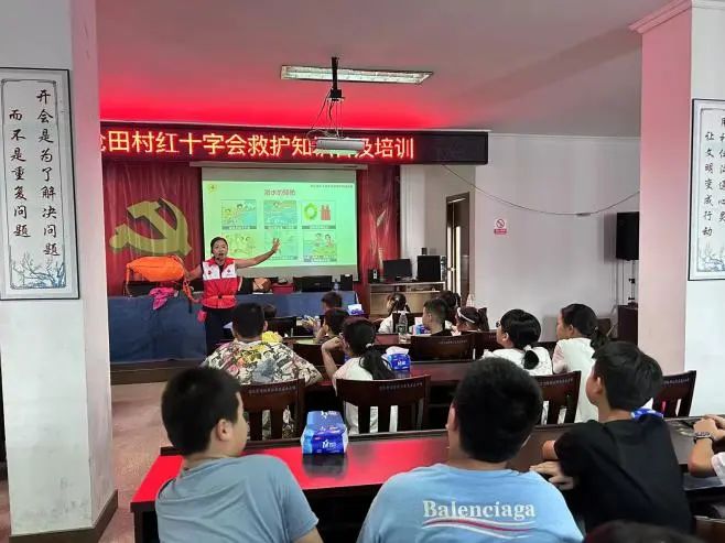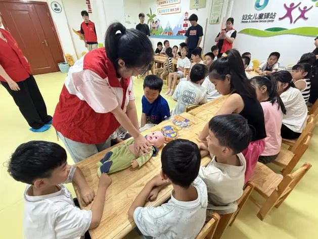 7月22日,沧田村暑期“假日学校”开展应急救护专题培训。宁波市红十字二级应急救护讲师通过理论讲解和实操演练,教授学生防溺水知识及心肺复苏、AED使用等急救技能,提升安全救护能力。