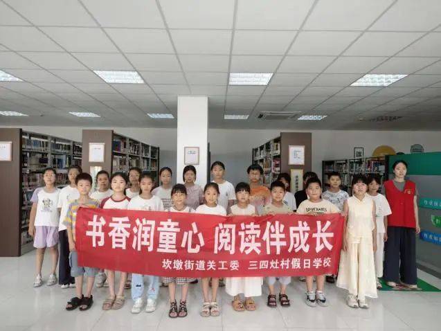 坎墩街道 7月23日上午,三四灶村暑期“假日学校”组织孩子们前往坎墩街道文体中心图书馆开展“书香润童心 阅读伴成长”沉浸式阅读活动。志愿者老师指导孩子们学习图书馆礼仪和图书借阅规范,培养良好阅读习惯。