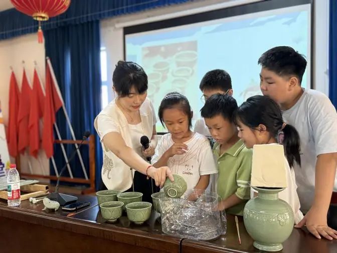 新浦镇 7月22日上午,黎明村暑期“假日学校”开展青瓷瓯乐体验课。越窑青瓷瓯乐传承人白中华指导孩子们用青瓷器皿演奏传统音乐,感受非遗文化魅力。
