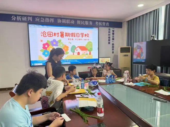 7月18日,沧田村暑期“假日学校”开展“纸巾花制作”手工课。孩子们在动手实践中学会环保利用材料,也在合作中增进友谊。