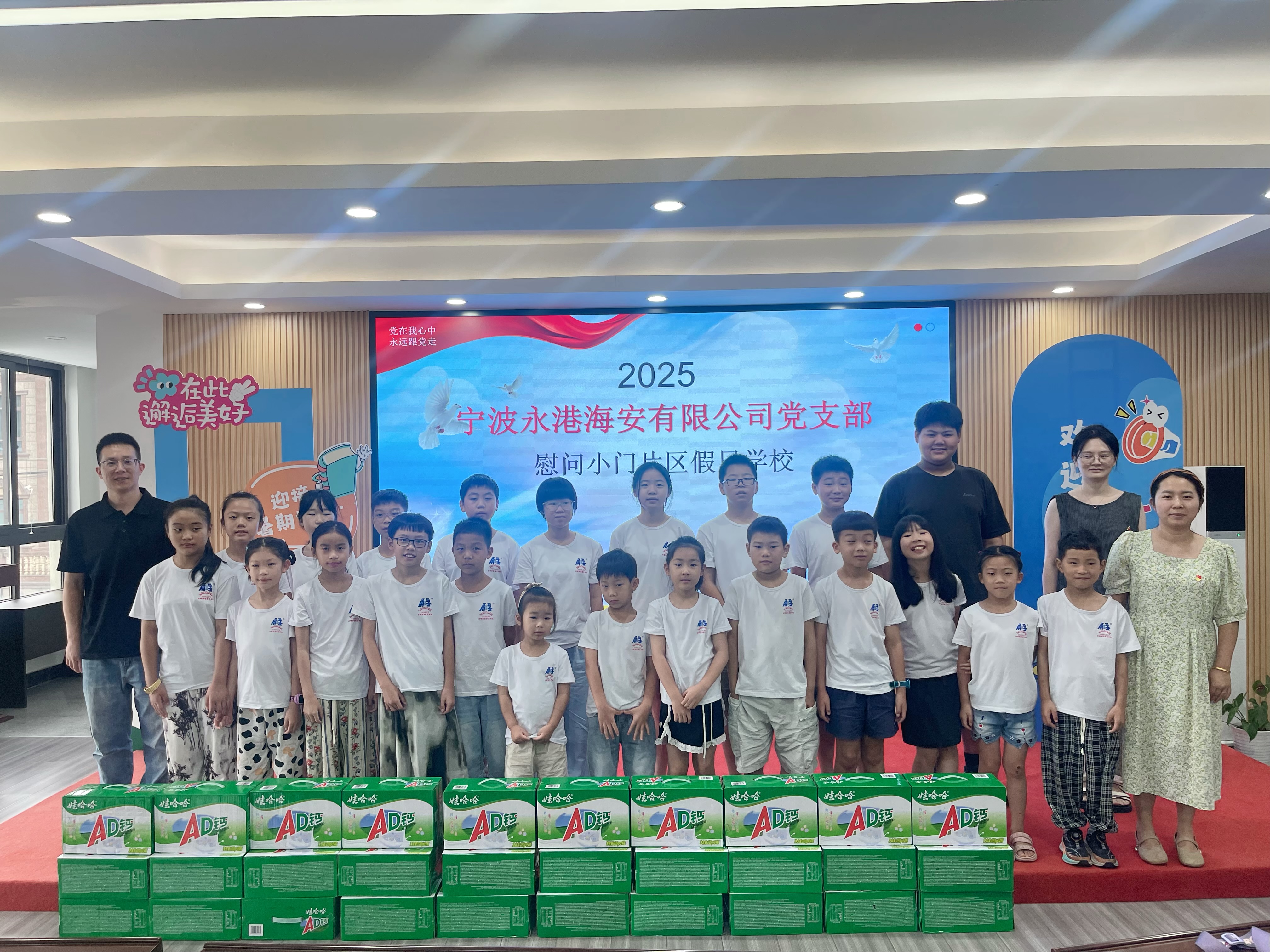 7月25日上午,宁波永港海安有限公司党支部、北仑区白峰街道华埠控股有限公司党支部先后走进小门片区假日学校。看着孩子们一张张纯真的笑脸,党员们将精心准备的AD钙奶、面包、酸奶等物资一一分发。拿到饮品和点心的孩子们难掩喜悦,清脆的道谢声回荡在教室,小小的善举让假日学校的课堂充满了温馨。