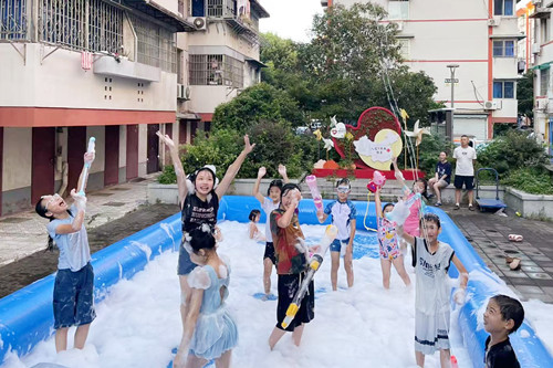 江北区外滩街道浮石社区关工委开展“泳池派对 清凉泡泡趴”活动 为了拥抱夏日缤纷,唤醒多巴胺和快乐,8月17日下午,外滩街道浮石社区关工委在新马小区内开展了“泳池派对 清凉泡泡趴”活动。活动以夏日泡泡趴&露天电影为主,现场还有投壶、水枪大作战等老少皆宜的小游戏,为居民提供了纳凉休闲新去处。在这里不只有霓虹和喧嚣,还有烟火人间里的邻里相聚。