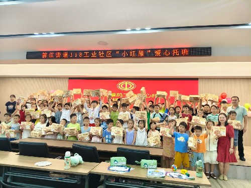 江北区前江街道关工委举办“假日学校”结业汇演 8月21日下午,江北区前江街道关工委“假日学校”结业汇演精彩上演,为暑期职工子女关爱服务画上圆满句号。汇演中,孩子们带来了充满活力的非洲鼓表演、回族舞蹈和歌曲联唱,充分展示了在托班的学习成果与蓬勃朝气。并为表现优异的学员颁发了奖状。