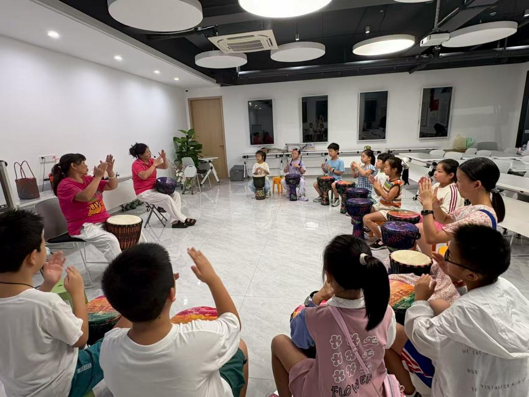 潘火街道:鼓点踏响夏日,童心舞动“澎湖湾” 8月26日上午,潘火街道王家弄社区内传来鼓声阵阵,一场以“家门口的幸福节拍”为主题的非洲鼓教学活动正在火热开展。本次活动由社区关工委联合社区亲青课堂共同组织,特邀社区非洲鼓志愿者现场教学,带领孩子们走进充满异域风情的音乐世界。 “大家可以试试,敲击鼓面中央和边缘,听到的声音有什么不同?”社区“鼓舞飞扬”非洲鼓队队长朱明花耐心地向孩子们演示着非洲鼓的演奏技巧。孩子们好奇地尝试着,发现敲击不同位置竟能发出迥异的声音——鼓面浑厚低沉,鼓边清脆响亮。新奇体验让孩子们兴奋不已,不少小朋友不自觉地用脚打着拍子,全身心沉浸在音乐的魅力中。