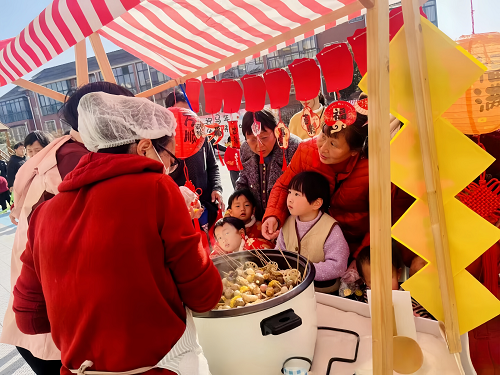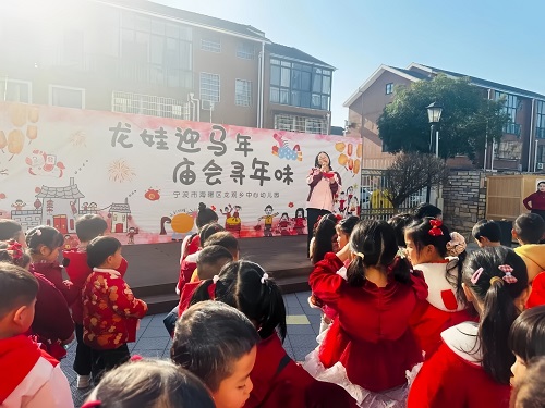 1月21日,海曙区龙观乡中心幼儿园关工委以“龙娃迎马年,庙会寻年味”为主题,举行了一场别开生面的“冬之味迎新春”活动。在老师的带领下,幼儿园小朋友们与家长齐聚一堂,在充满年味的氛围中逛庙会、品美食、传祝福,共同迎接新春佳节的到来。 冬日暖阳洒满校园,老师们早早忙碌起来:一盏盏火红的灯笼高高挂起,一个个美食摊位被创意装点,处处洋溢着喜庆祥和的节日气息。在欢声笑语中,大手牵小手,家长与孩子们围坐在一起,揉面、包馅、串糖葫芦、做冻米糖……大家认真制作着每一份承载着心意的传统美食,感受“老底子”的年味。 欢快的音乐奏响激昂序曲,一场温馨且充满年味的美食庙会正式拉开帷幕。主持人以精彩绝伦的开场白点燃现场热情,园长妈妈登台致辞,言语间满是对孩子们成长的期许与对新年的美好祝福。随后,各班“美食小掌柜”自信满满走上舞台,热情介绍班级精心准备的特色年味小吃,赢得阵阵掌声。庙会现场热闹非凡,在美食街里,刚出锅的大头菜饭香气四溢,手工搅糖甜到心里,大家在“吃吃逛逛”中感受浓浓的年味。