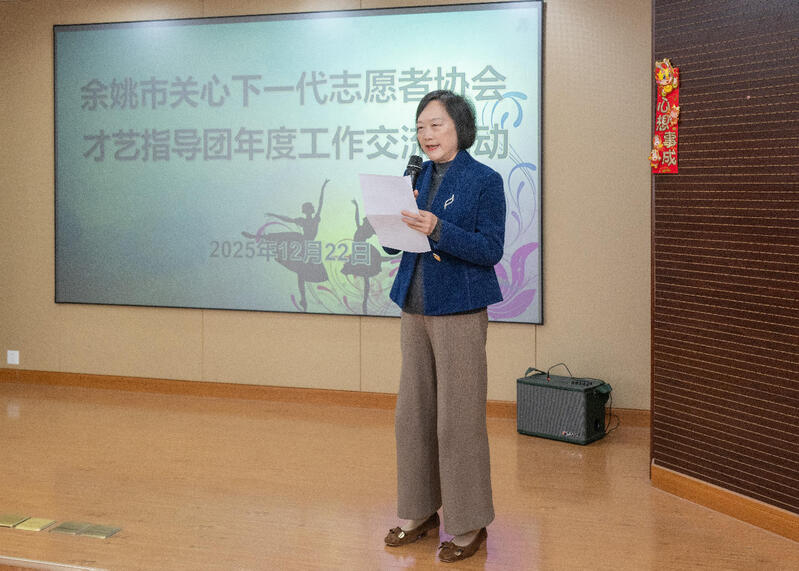 12月22日,余姚市委老干部局会议室内充满迎新的喜庆与温暖,红“福”字、春联、中国结装点满屋,一场别开生面的余姚市关心下一代志愿者协会才艺指导工作团年度工作培训交流活动在此举行。余姚市关心下一代志愿者协会副会长裘秀菊出席活动并讲话,活动由才艺指导工作团副团长韩建芬主持,23位团队成员参与活动,并带来了即兴的节目进行交流展示。会场气氛热烈而温馨,一张张幸福的笑脸充盈出满满的归属感。